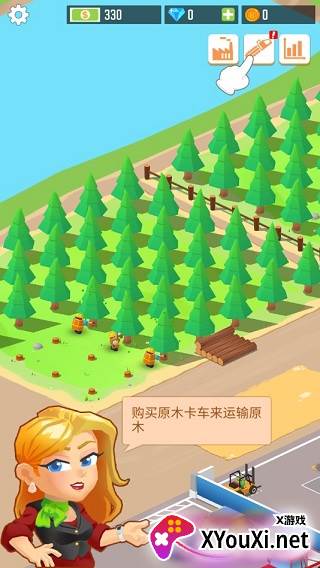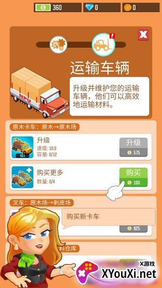 3. 有了原材料,运输环节的规划也随之而来。跟随手指的指示,购置原木卡车,让您的原木得以高效运送。