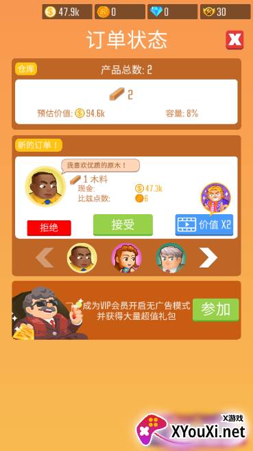 - 订单与收益: 积极承接订单,将木材转化为丰厚的收入。