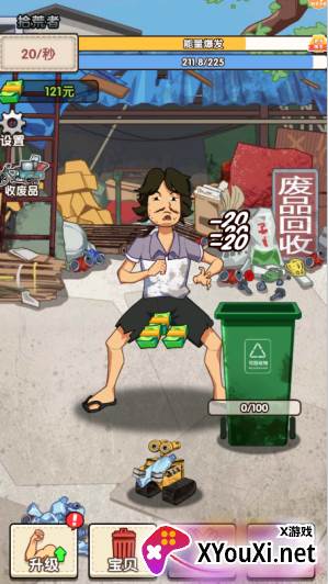 轻触屏幕,即可翻找垃圾桶,拾取废品以赚取金币。这些金币能够用于提升你的“捡垃圾”效率,助你早日登顶“废品之王”的宝座。