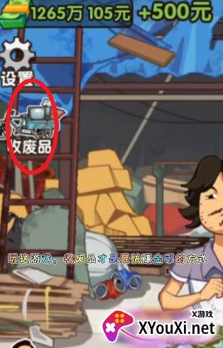 点击左侧的“收废品”选项,进入界面后寻找下方的“老头”。