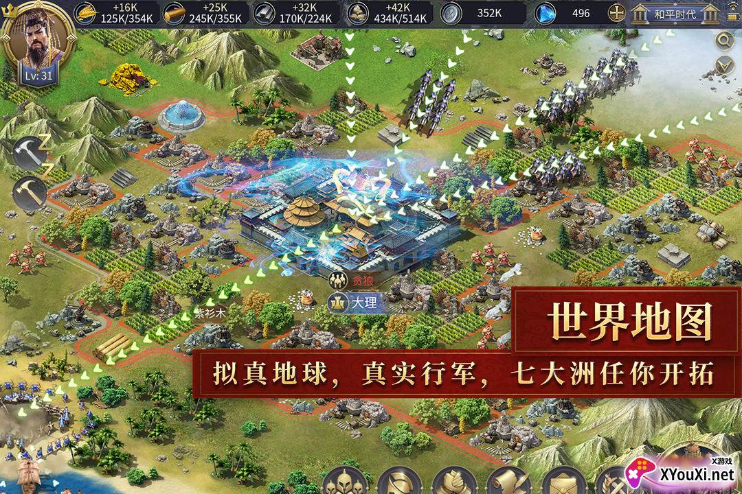 游戏以真实历史为蓝本,精心打造高度拟真的全球沙盘地图,完美复刻人类文明演进的壮丽画卷。您在这里的每一个决策都与现实息息相关:攻城略地需逐一征服周边城池,国家建设亦需考量地理因素——沿海重镇适合发展航海,内陆城市则应侧重农耕。这里没有预设的关卡,等待您的是一个独一无二的真实世界!